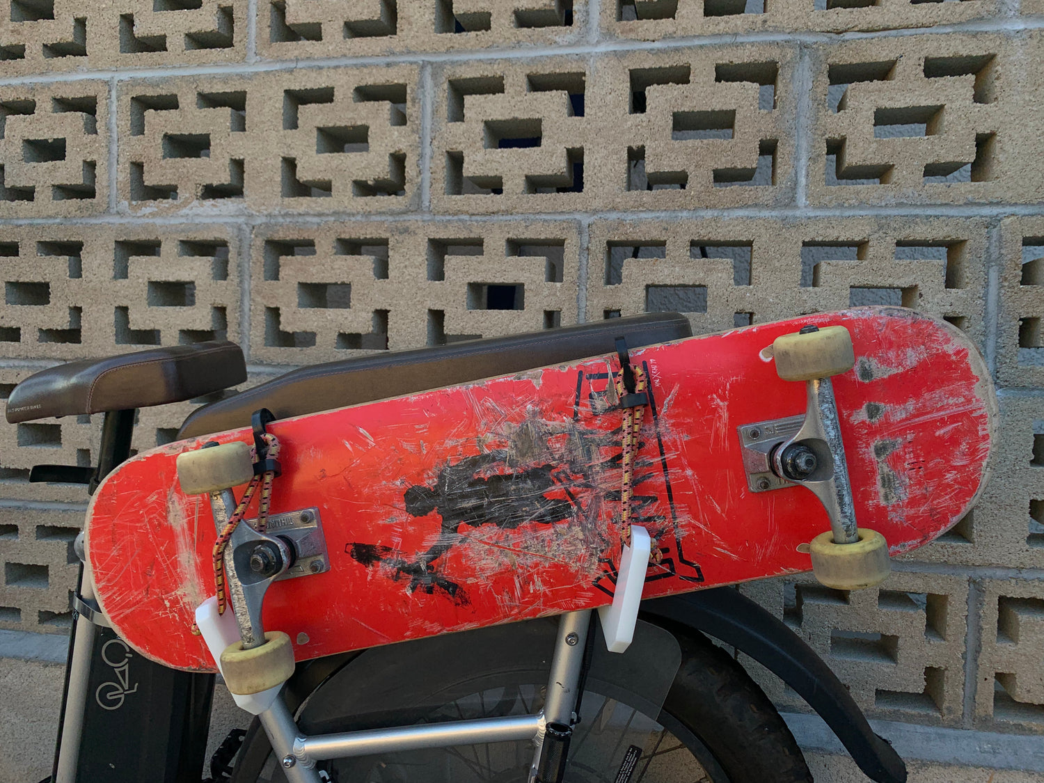 Heading to the skatepark? Use our Skateboard Rack to get there fast and safe, without damaging your seat!