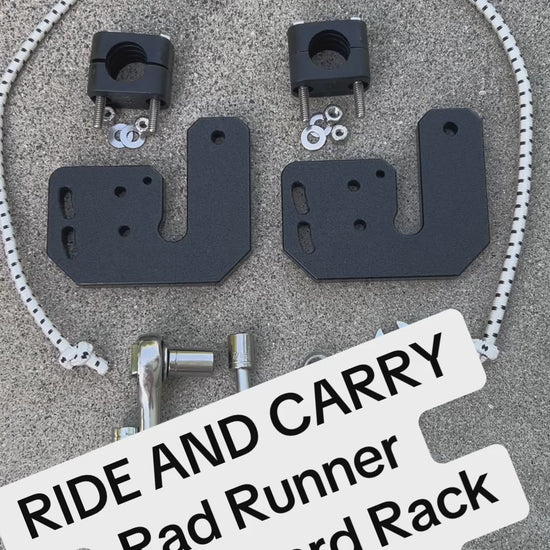 This Skateboard Rack is custom made to fit the Rad Runner ebike. The rack can be installed on one or both side(s) of the rear seat, and can hold one skate board each. The board is secured by bungee chords and has been "curb hop tested" and approved. Even with the boards secured in the rack, you can still comfortably carry an additional passenger!